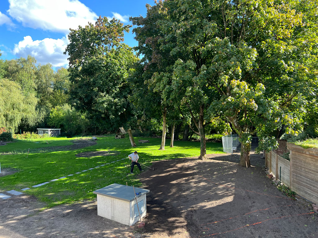 Der große Garten im Neubauprojekt Ohle10 in Hamburg-Ohlstedt nimmt Gestalt an und auch die Abstellräume an den Terrassen und Balkonen entstehen. Man bekommt jetzt schon einen Eindruck, wie idyllisch die spätere grüne Oase im Gemeinschaftsgarten wirken wird – direkt am Park gelegen und dennoch stadtnah. Ein Ort zum Wohlfühlen und Durchatmen.