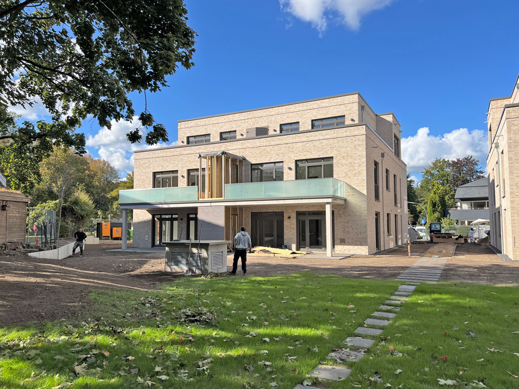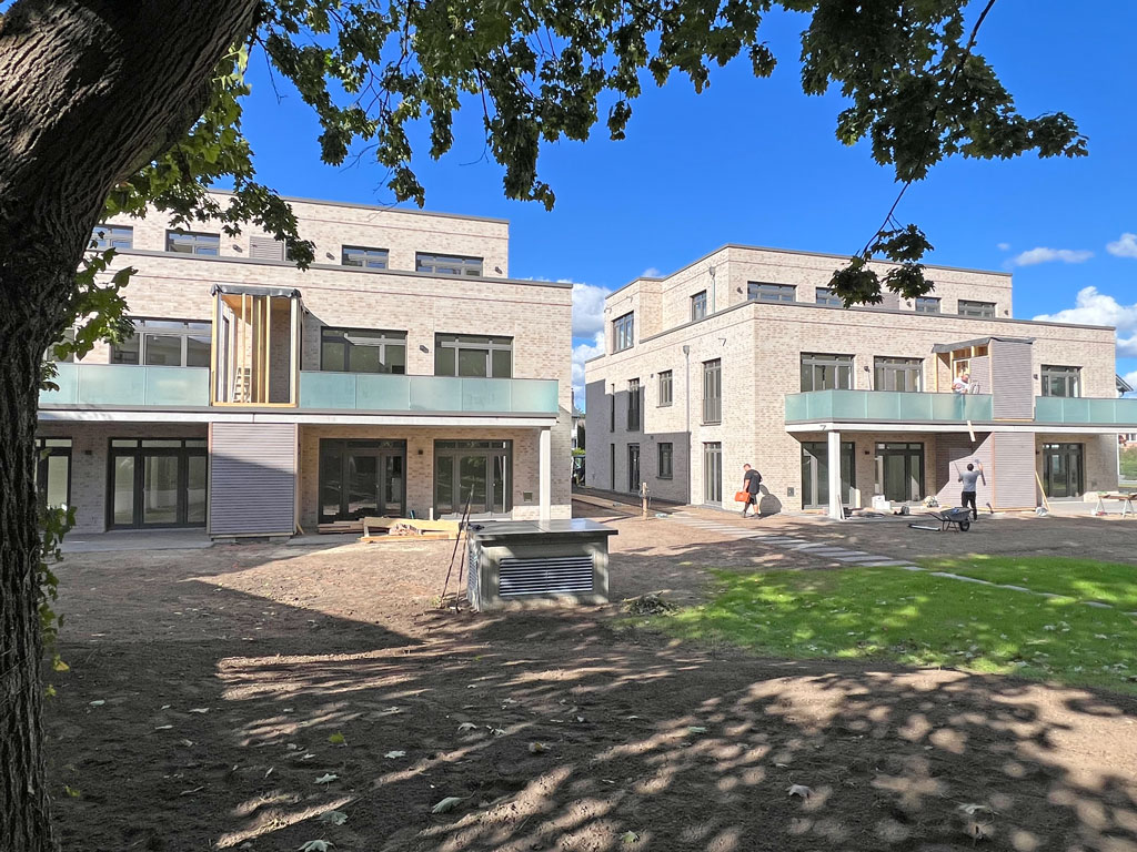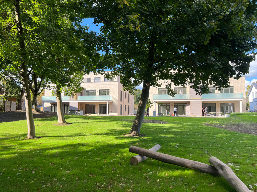 Der große Garten im Neubauprojekt Ohle10 in Hamburg-Ohlstedt nimmt Gestalt an und auch die Abstellräume an den Terrassen und Balkonen entstehen. Man bekommt jetzt schon einen Eindruck, wie idyllisch die spätere grüne Oase im Gemeinschaftsgarten wirken wird – direkt am Park gelegen und dennoch stadtnah. Ein Ort zum Wohlfühlen und Durchatmen.